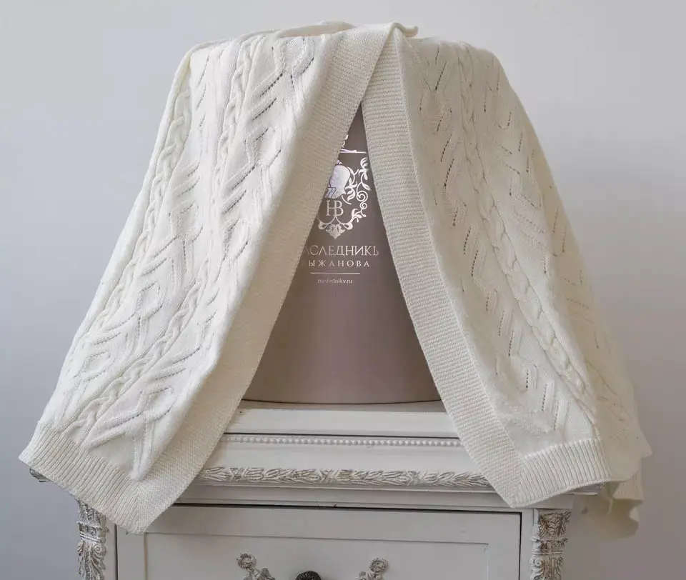 Плед Наследник Выжанова изготовлен из мягкого органического хлопка, благодаря которому изделие приобретает приятную текстуру. В будущем этот плед можно использовать в качестве покрывала для кроватки или коляски во время прогулок, а также как украшение поверх тёплого конверта.