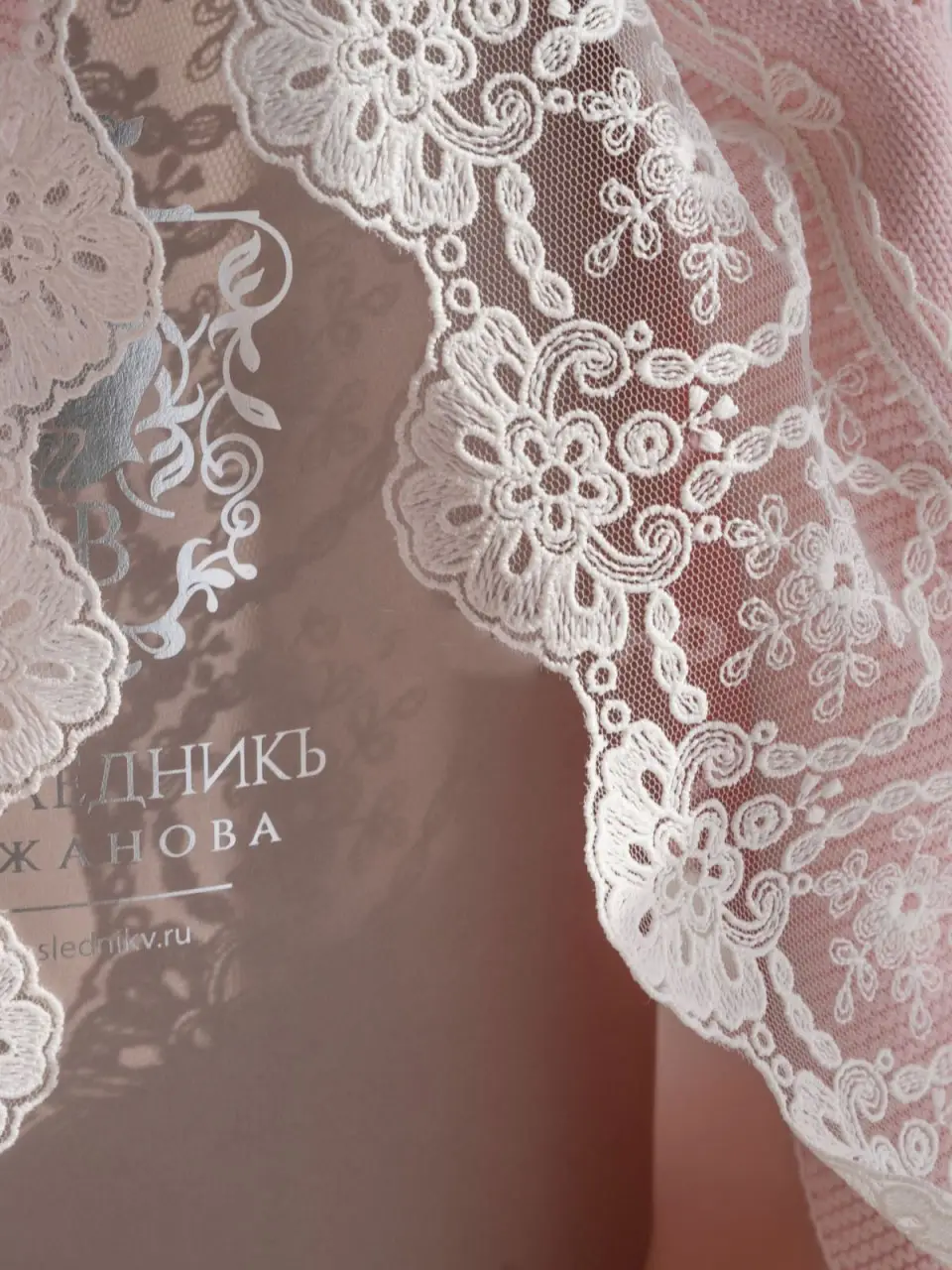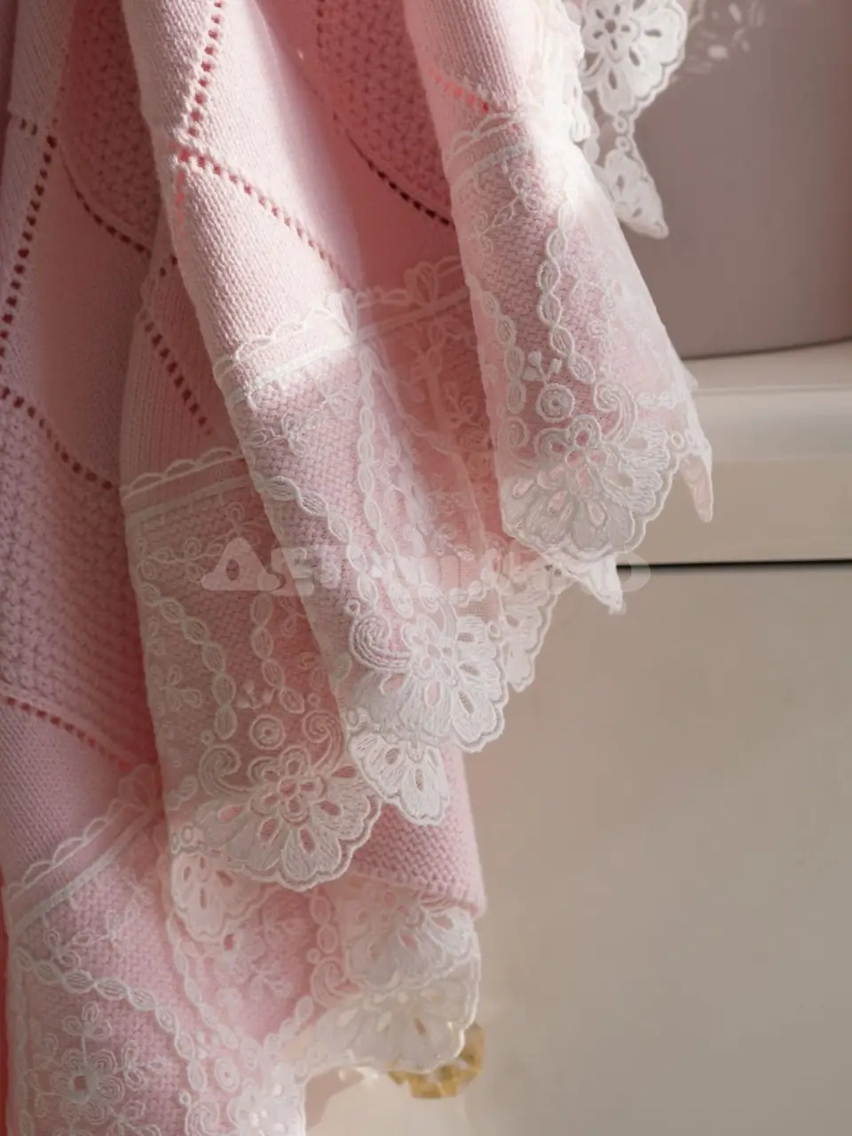 Плед с кружевом Наследник Выжанова ромбы розовый 95х95 см