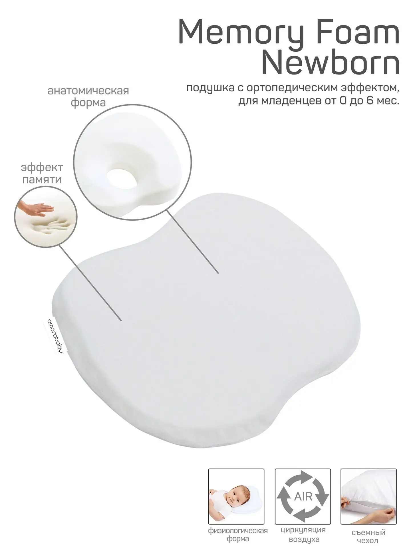 Подушка Memory Foam Newborn мягко подстраивается под индивидуальные особенности организма, поддерживает голову и шею в анатомически правиль...