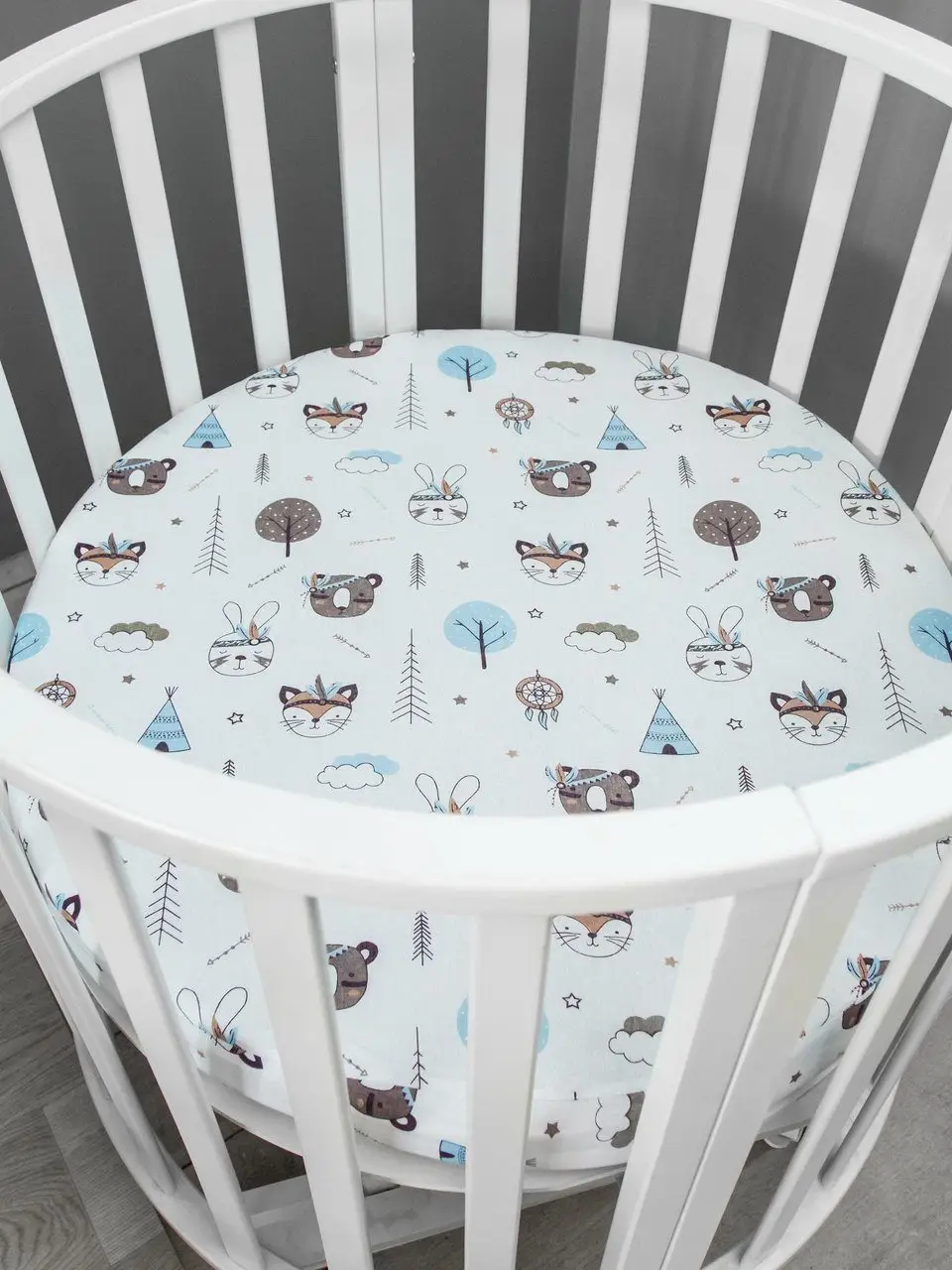 Мягкий и нежный поплин из 100% хлопка, соответствуют Российским и Европейским стандартам качества. Простыня имеет универсальный размер и подходит для использования в круглых кроватках.