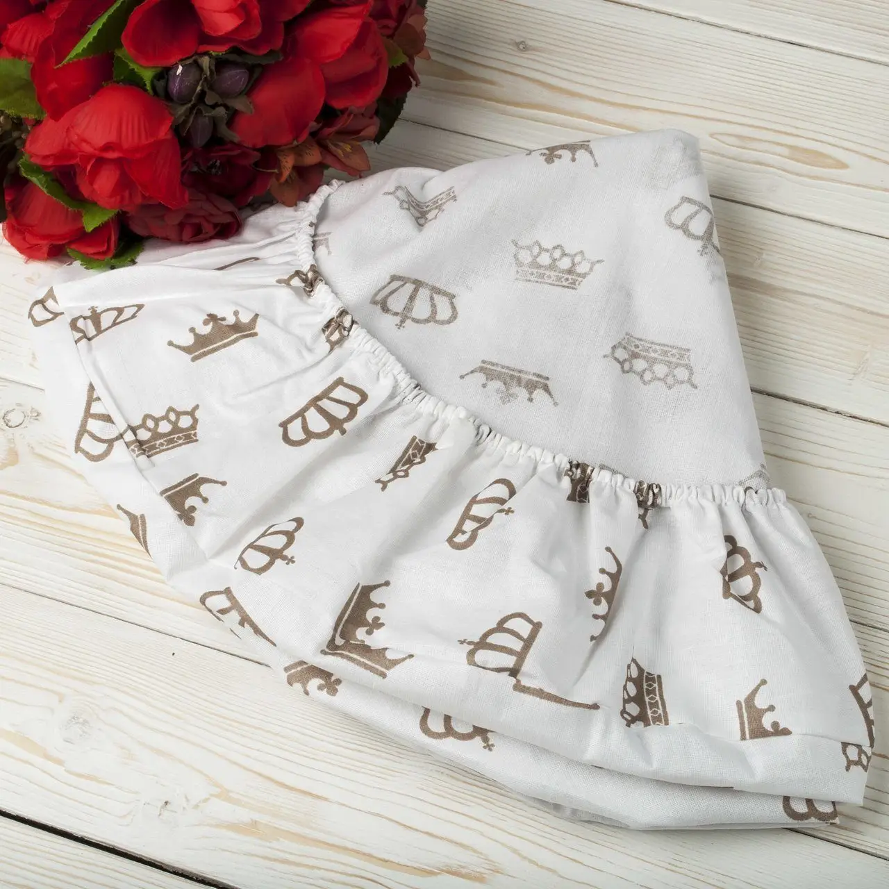 Простыня AmaroBaby на резинке круглая Короны кофе бязь 75х75х12 см