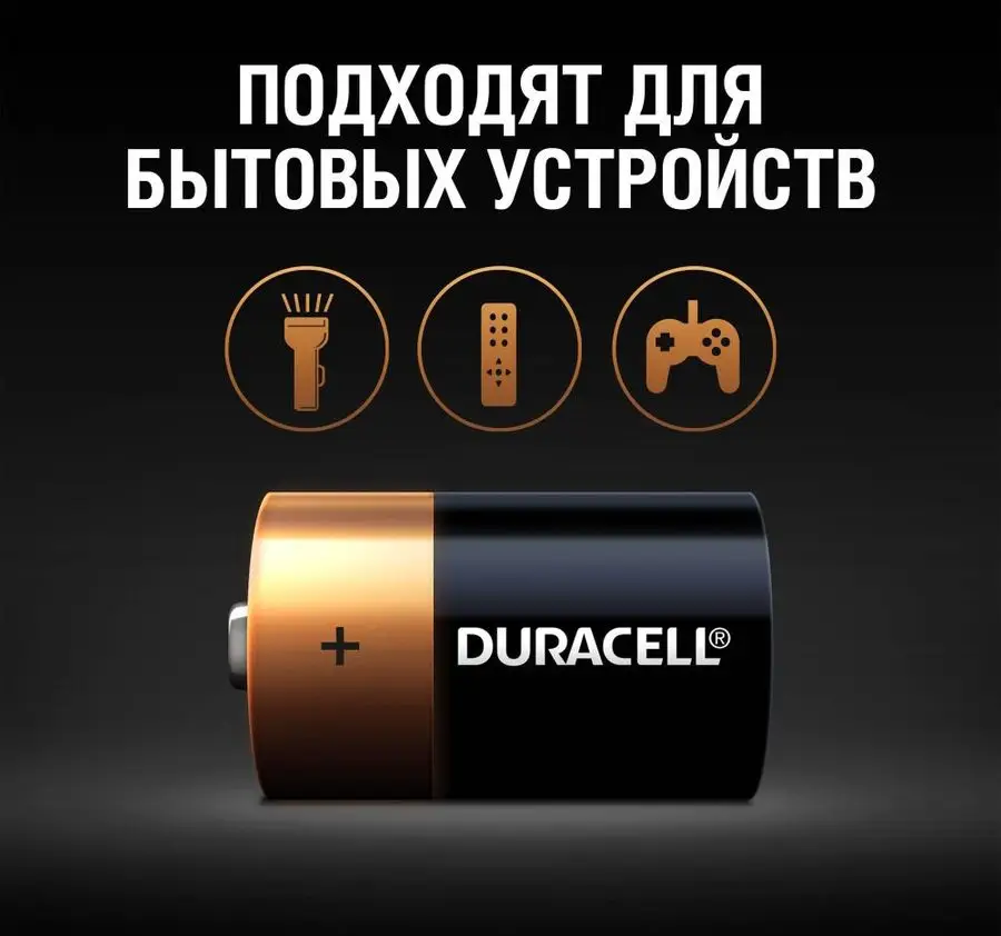 Батарейки Duracell размера D — универсальные щелочные батарейки, которые станут надёжным источником питания для часто используемых устройств...