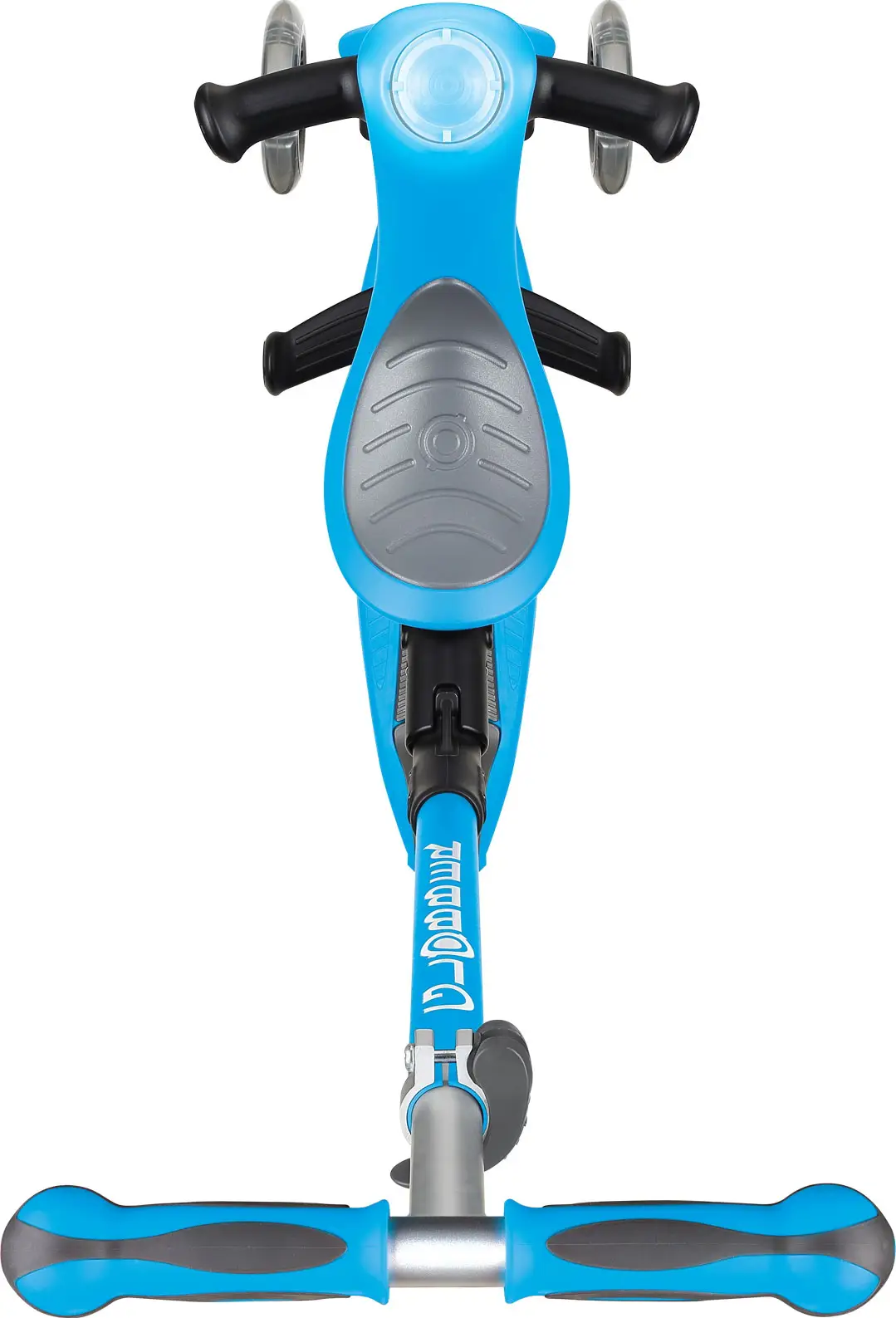 Globber Go Up Deluxe Play Lights – детский самокат/каталка который легко собрать или трансформировать для 3 режимов использования: детская каталка, беговел или самокат.