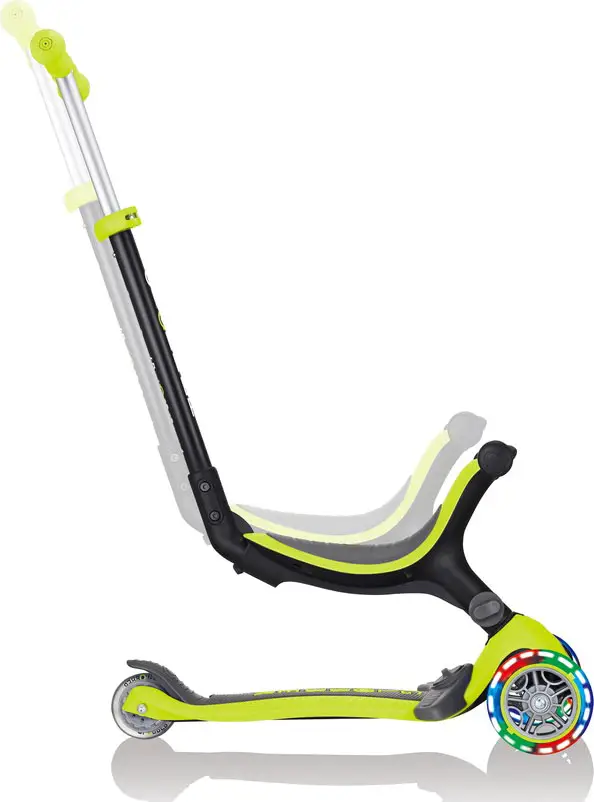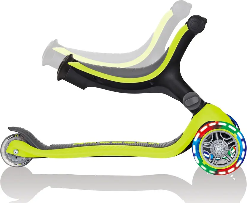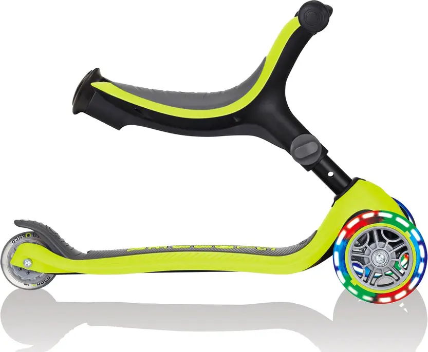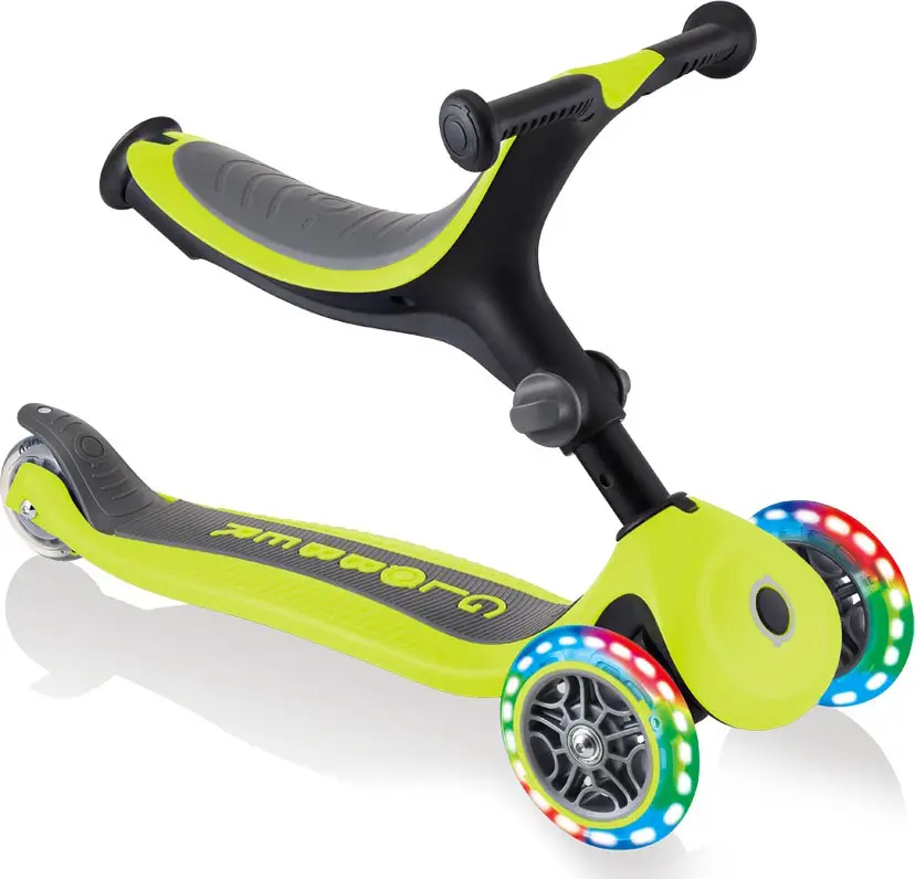 Globber Go Up Foldable Lights – стильный и практичный безвинтовой трансформер, который без дополнительных инструментов может превратиться в 3 разных средства передвижения: каталку, беговел и самокат.