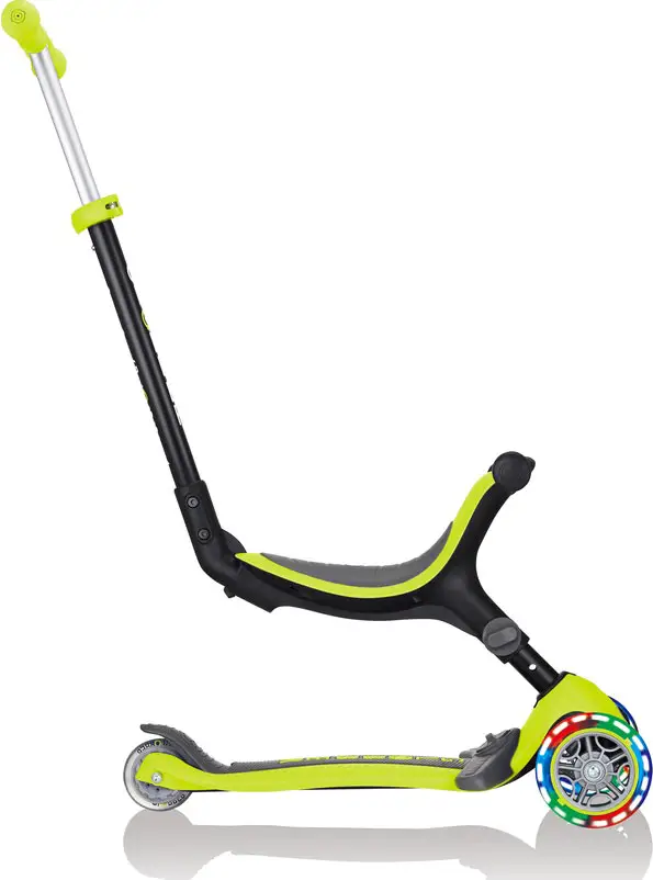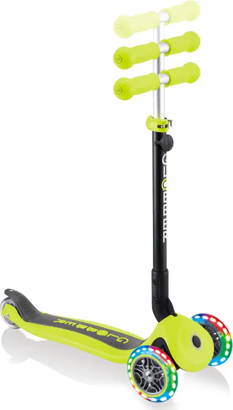 Комфорт и безопасность – вот, что выделяет самокаты фирмы Globber. На данной модели установлены яркие светящиеся колёса, которые несомненно будут видны на дороге, что очень важно для безопасности ребёнка.