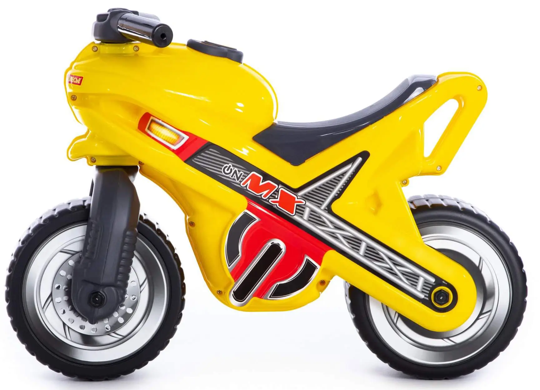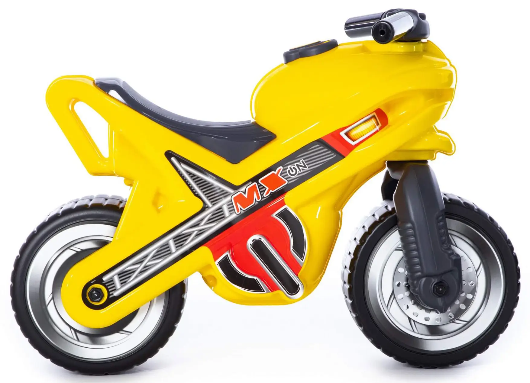 Реалистичный детский мотоцикл-каталка MX Полесье отлично подойдёт для активных прогулок на улице и научат малыша управлять.