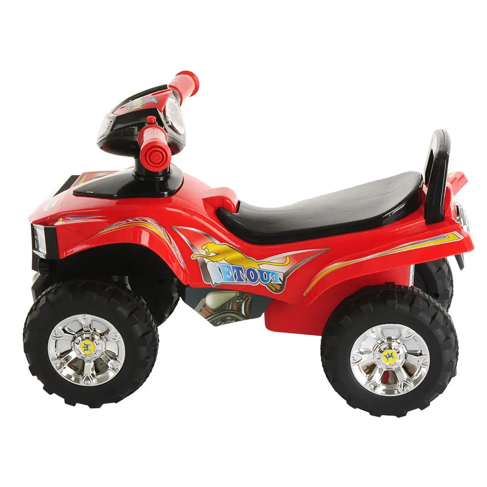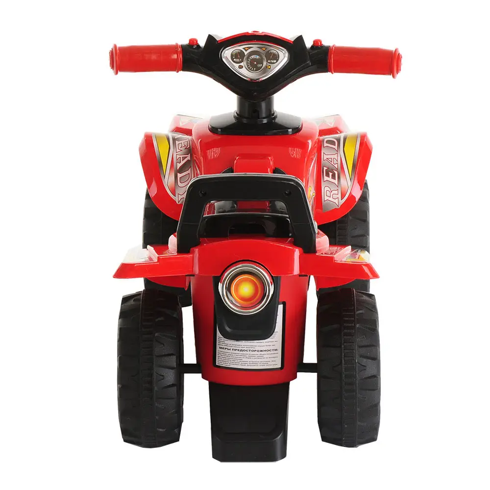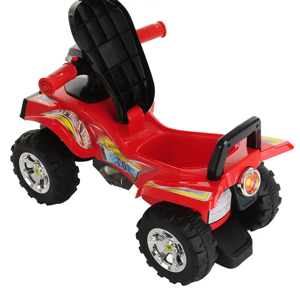 Использование такой игрушки помогает детям развить ловкость и моторику, а также доставляет много радости. Она одинаково хорошо подходит для эксплуатации как в помещении, так и на улице. Спинка в виде ручки позволяет ребёнку толкать игрушку перед собой, держась за неё в процессе обучения ходьбе. Модель выполнена в форме квадроцикла, имеет большие колёса с рисунком на шинах и просторное сиденье для комфортной посадки. На руле расположены 3 кнопки, которые воспроизводят веселые песенки (батарейки в комплект не входят). Под сиденьем есть вместительный отсек для хранения любимых игрушек. Специальный стопор сзади защитит каталку от опрокидывания.