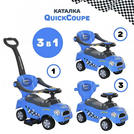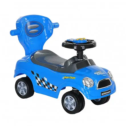 Каталка-автомобиль QuickCoupe с ручкой, бампером, подножкой и музыкальной панелью – это удобное и безопасное средство передвижения для вашего малыша от компании Pituso.