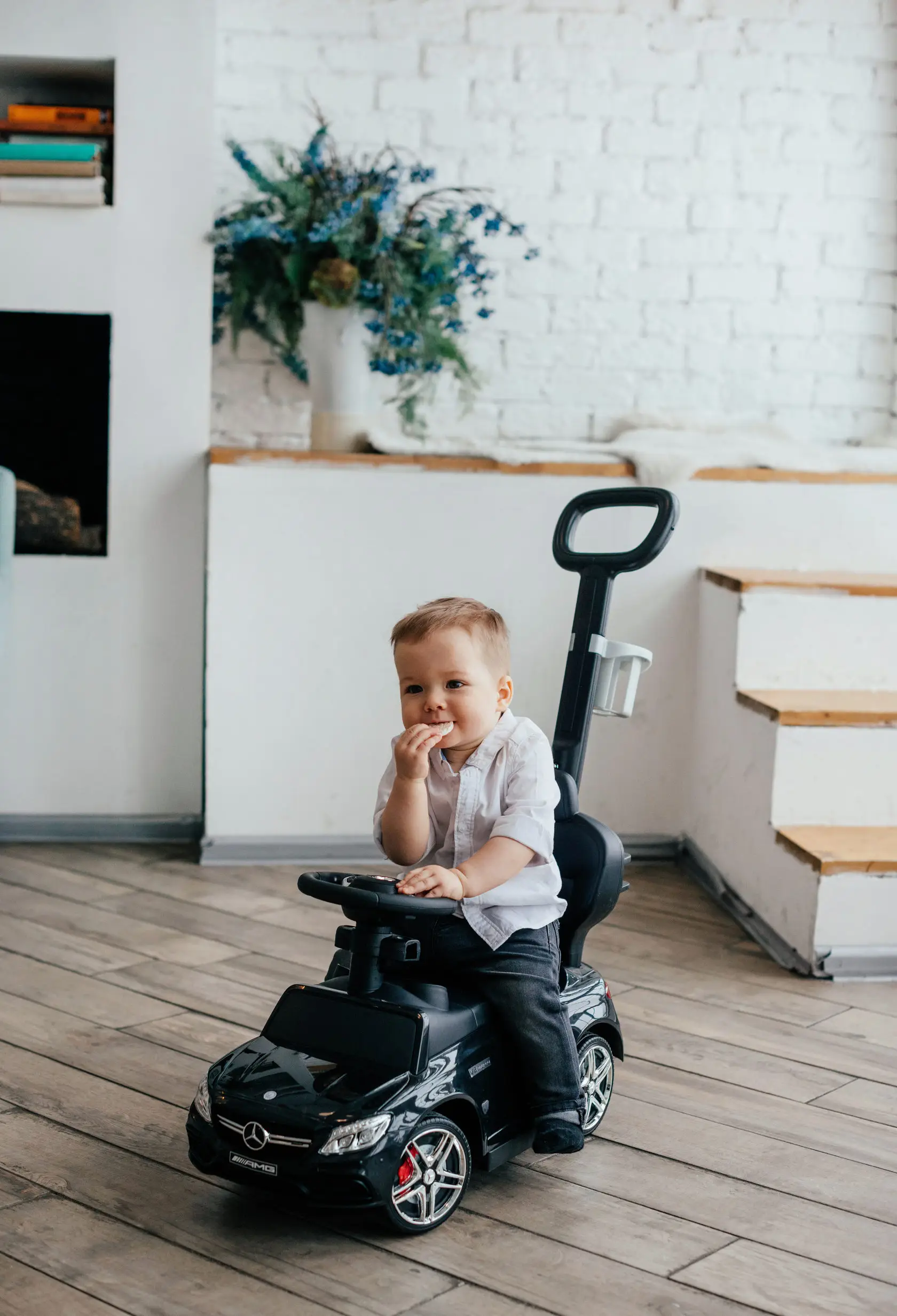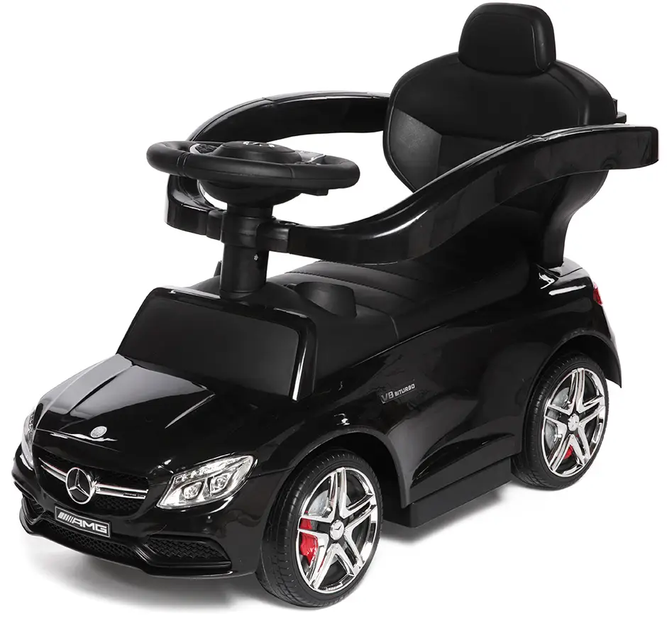 Реалистичный детский автомобиль-каталка Mercedes-Benz AMG C63 Coupe отлично подойдёт для активных прогулок на улице и научат малыша управлять своей первой машиной.