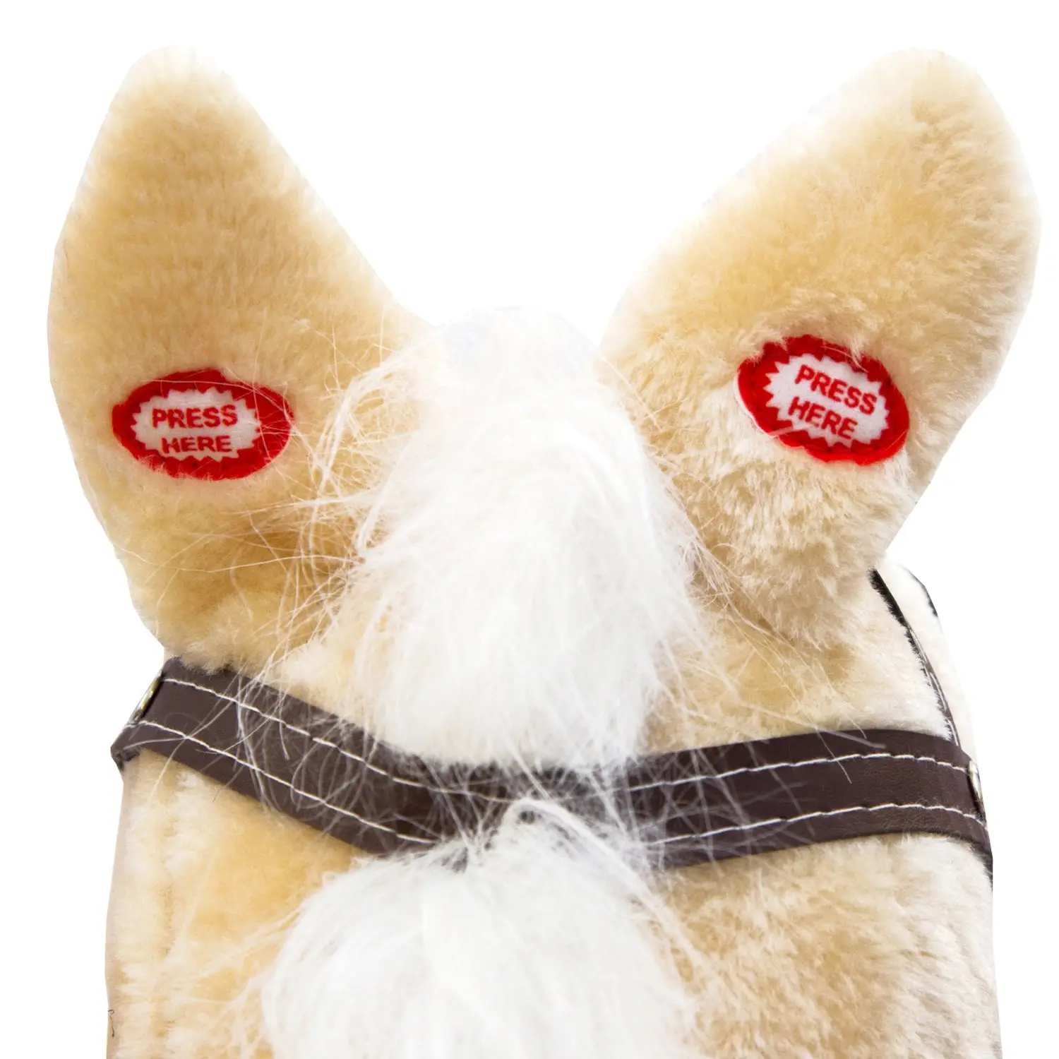 - качалка-лошадка поёт ковбойскую песню при нажатии на ушко, шевелит ртом и хвостом;