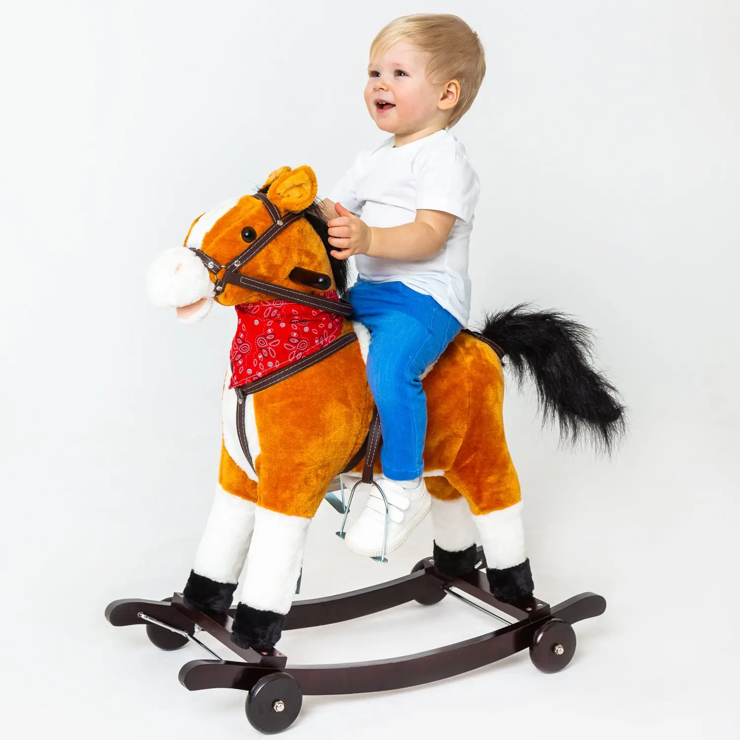 На лошадке-качалке будет весело раскачиваться маленькому ковбою, а установив колеса, можно катать малыша по комнате! Детская лошадка-качалка...