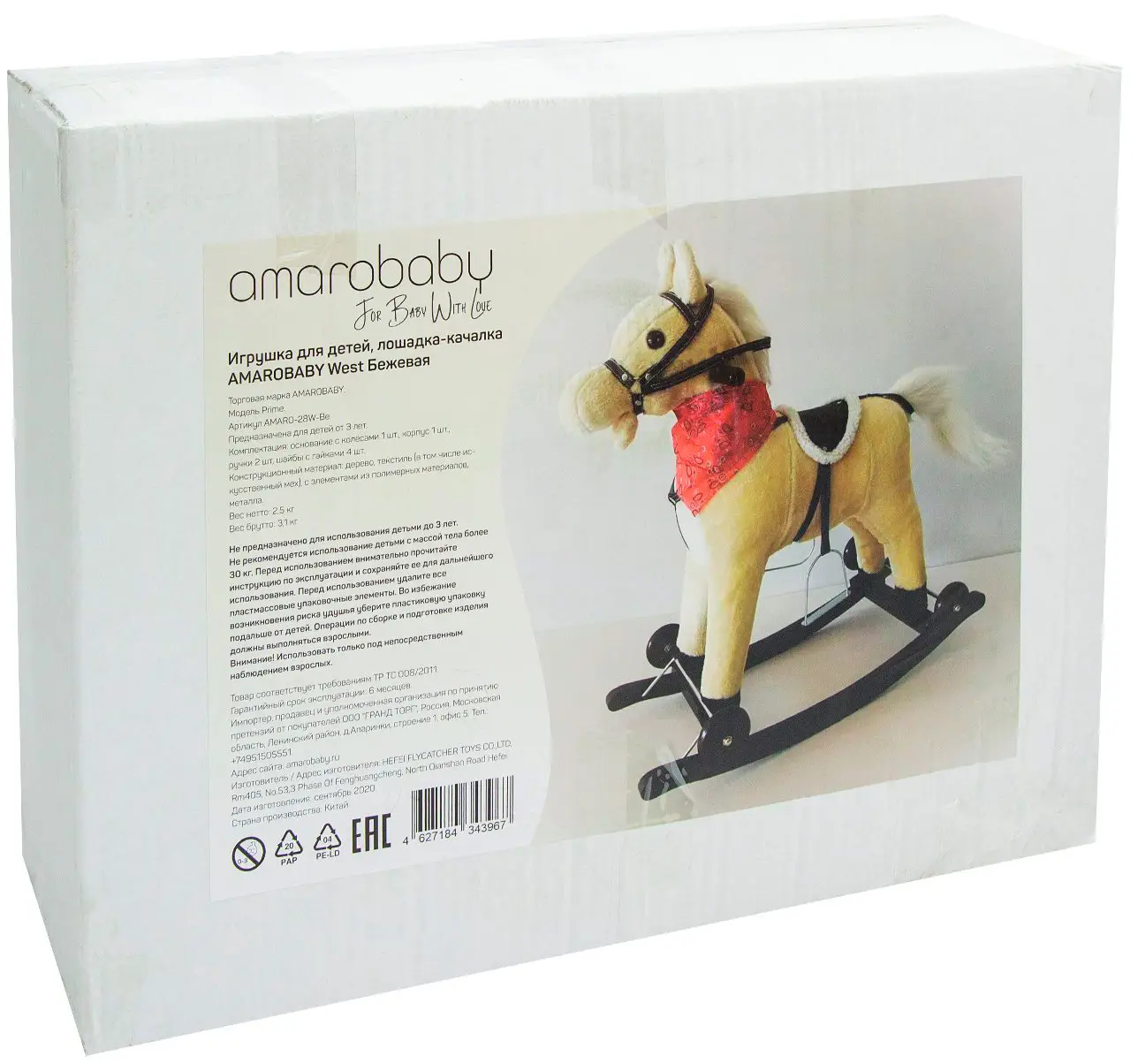 Лошадка каталка-качалка AmaroBaby West, с колёсами, бежевый