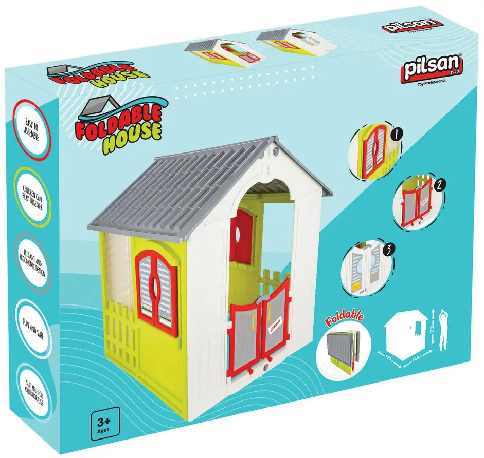 Pilsan Foldable House – яркий и красивый игровой домик, предназначенный для установки в закрытом помещении, либо на открытой площадке.