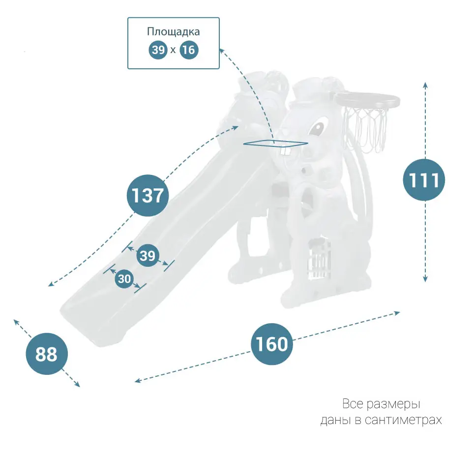 Яркий рисунок на горке привлечёт внимание ребёнка, а баскетбольное кольцо позволит придумать еще больше игр и занять ребенка на долгое время...