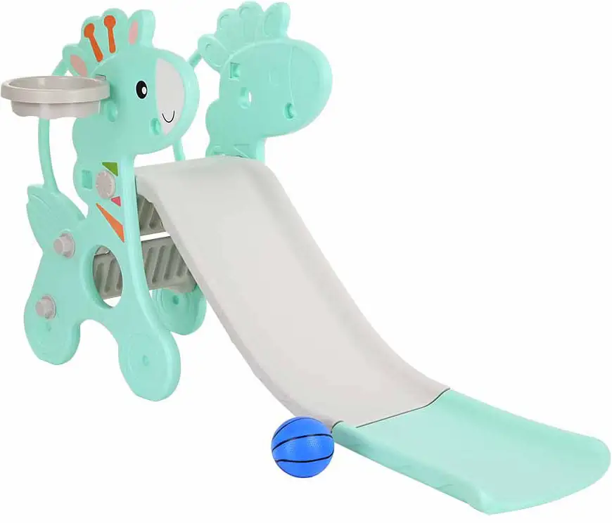 Горка Жирафик с баскетбольным кольцом, зелёная