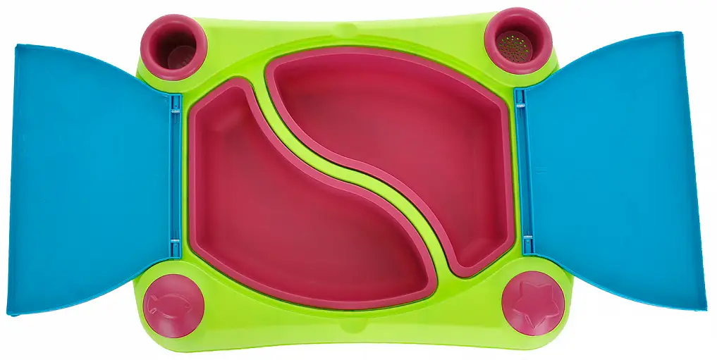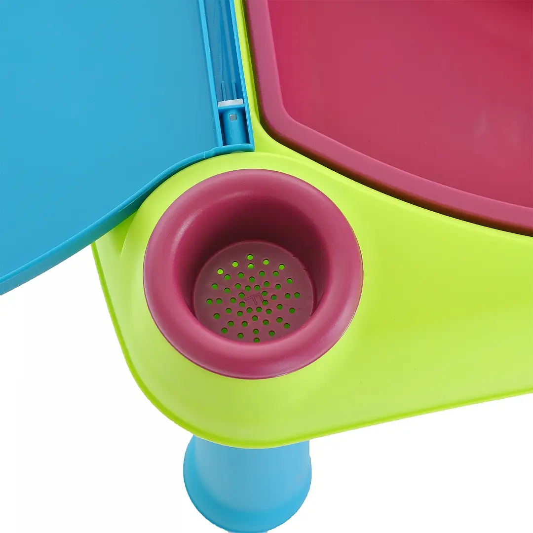 Столик имеет большую игровую поверхность, съёмные резервуары, которые удобно мыть, 2 ёмкости, которые удобно наполнять, а также чашу, решето...