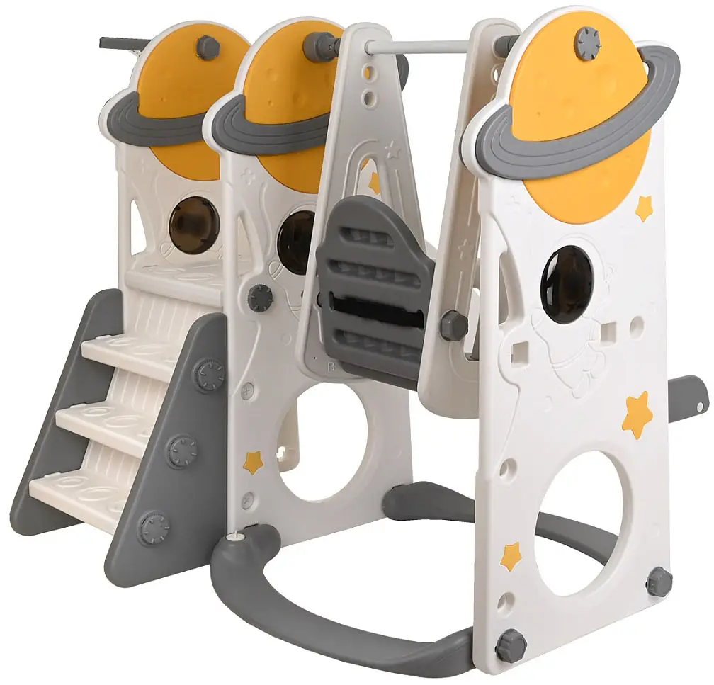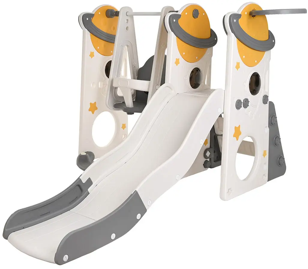 Комплекс Pituso Планета – идеальный выбор для всей семьи! Он включает горку, качели и баскетбольное кольцо, обеспечивая безопасность и комфорт для детей разных возрастов.
