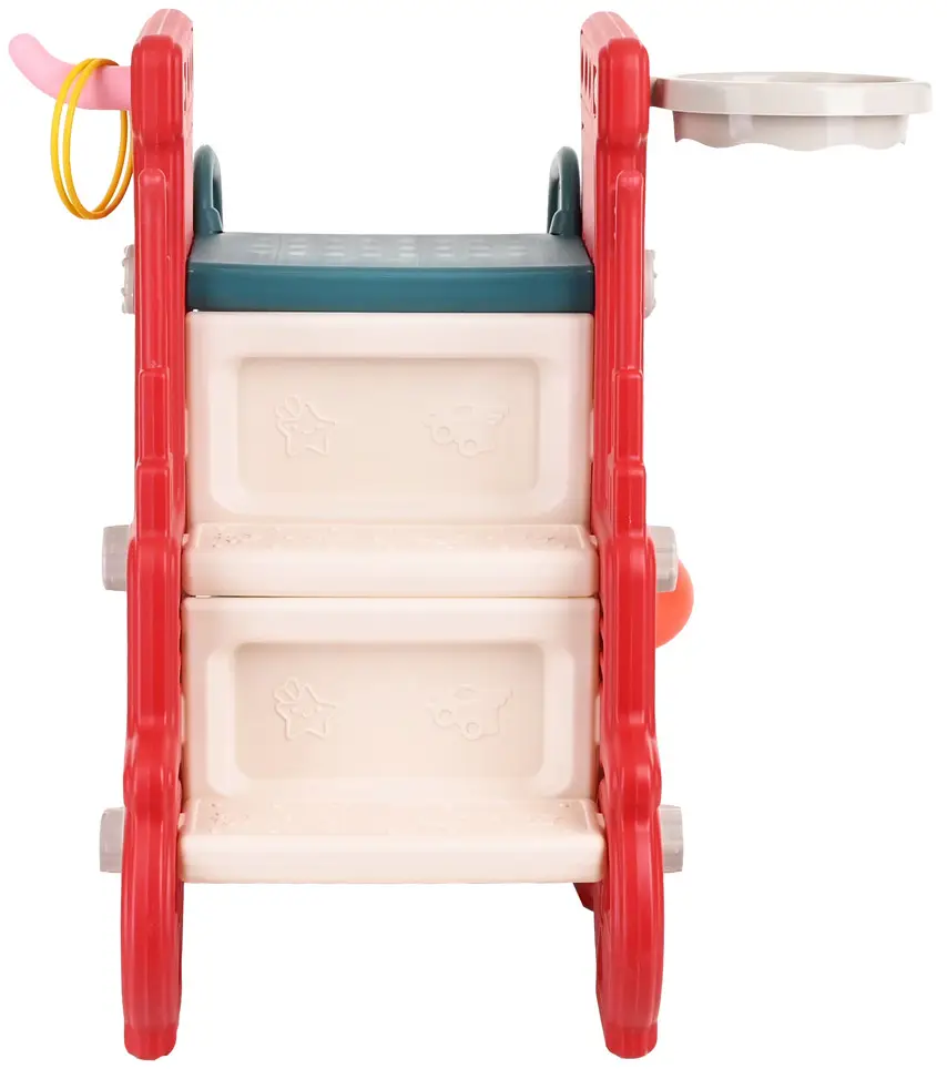 Она имеет яркий дизайн и оснащена баскетбольным кольцом, которое крепится к боковой панели. На горку ведут 2 закрытые ступеньки, защищающие ...