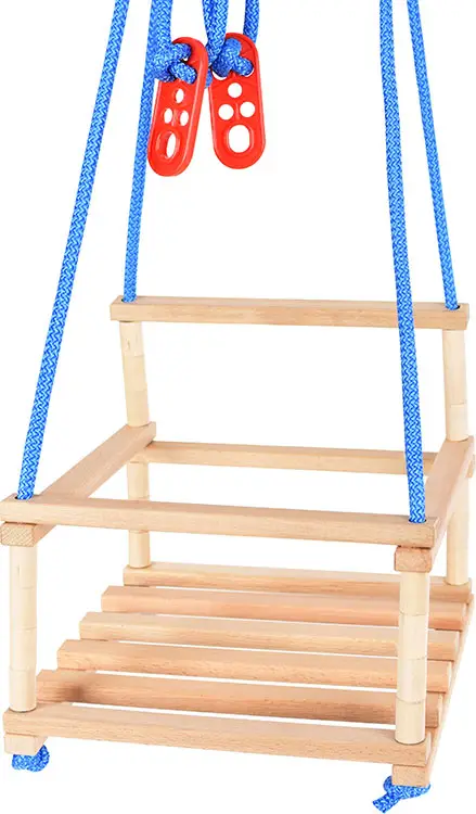 Детские подвесные качели изготовлены из твёрдых пород древесины, бука и берёзы. При изготовлении каждая деревянная деталь проходит многоступ...