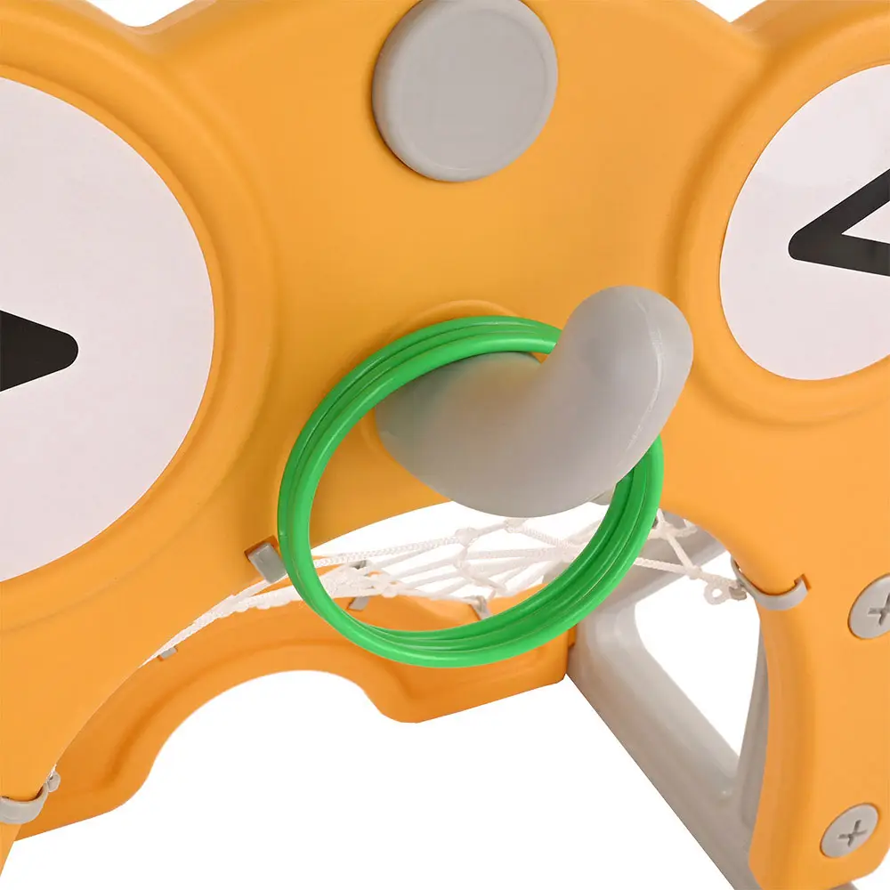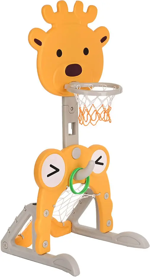 Стойка баскетбольная Жираф с кольцебросом, футбольными воротами Pituso, желтая