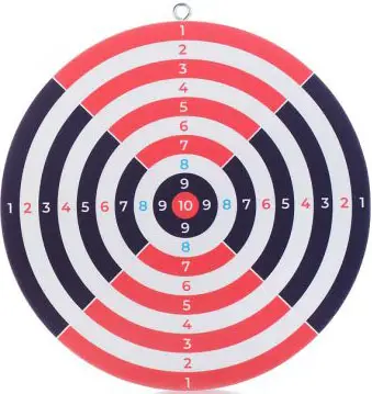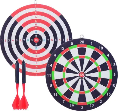 В набор для игры в дартс входит мишень из прочного и упругого материала с двусторонней печатью и 2 дротика. Мишень сделана с удобной и надёжной металлической петелькой для крепления.
