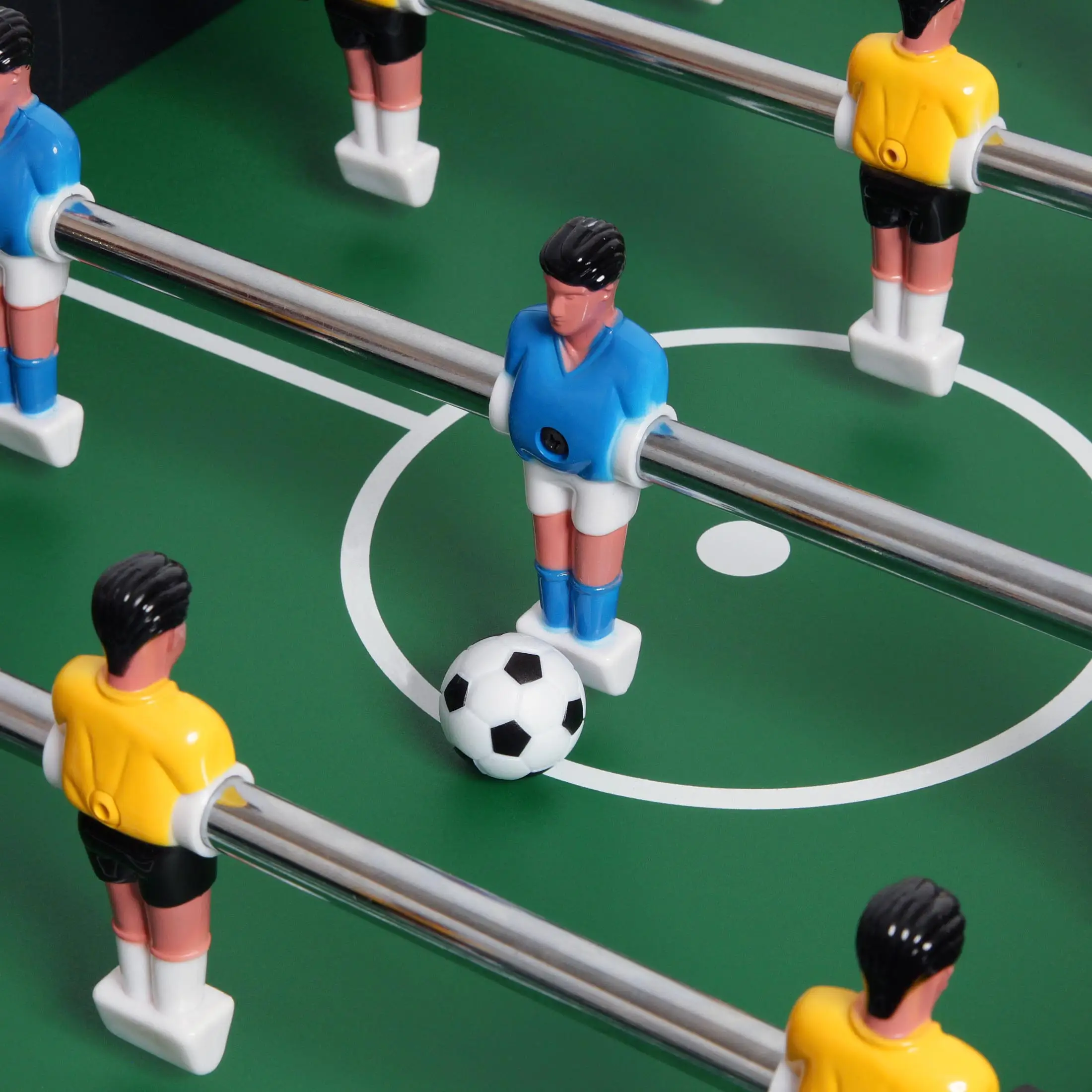 стилизованные фигурки футболистов, выполненные методом литья из долговечного полипропиленового материала надежно закрепляются на металлических штангах в установленных позициях. Штанги с фигурками вращаются вокруг своей оси на 360°.