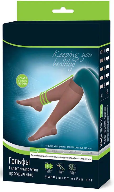 Гольфы компрессионные прозрачные, PRO, I класс компрессии, р.3, Natural
