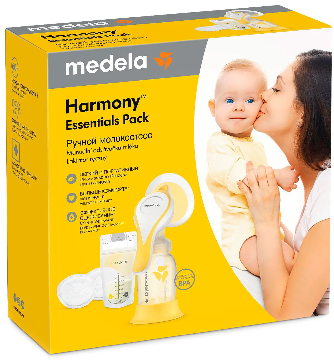 Набор Harmony™ Essentials Pack включает в себя необходимые аксессуары для сцеживания грудного молока и кормления. Кроме молокоотсоса, в набор входят силиконовая соска, четыре пакета для хранения и замораживания молока, а также 4 ультратонких прокладки для груди – всё, что может потребоваться для того, чтобы сцедить молоко, сохранить его и накормить вашего малыша.