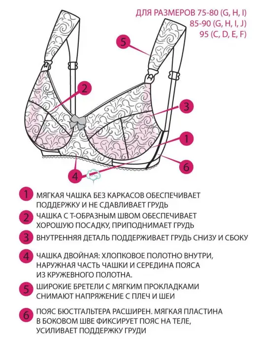 - бюстгальтер для больших размеров груди без каркасов с усиленной поддержкой;