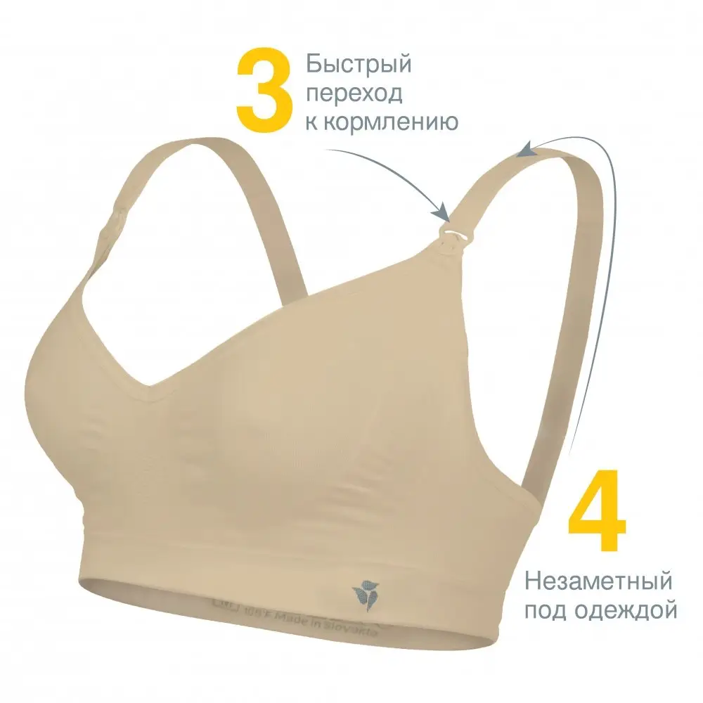 Бюстгальтер Medela Cindy создан для быстрого перехода к кормлению, адаптируется к изменениям груди с помощью комбинации растяжимых участков разного давления, тонких регулируемых бретелей и 3х4 ряда крючков на спинке.