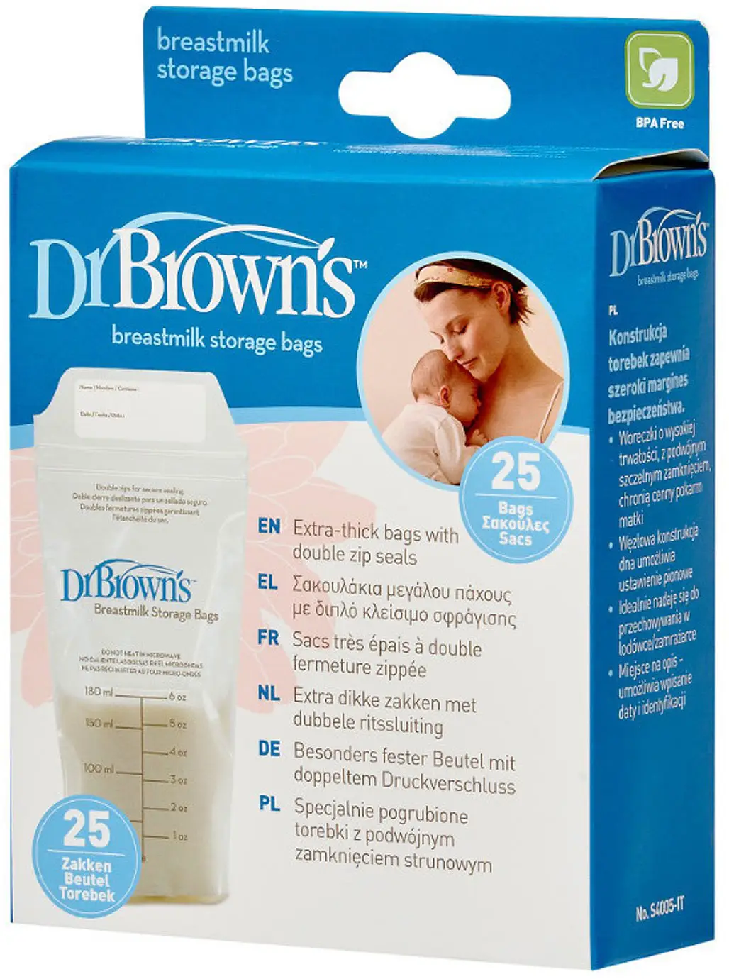 Пакеты для хранения грудного молока Dr. Brown 180 мл 25 штук