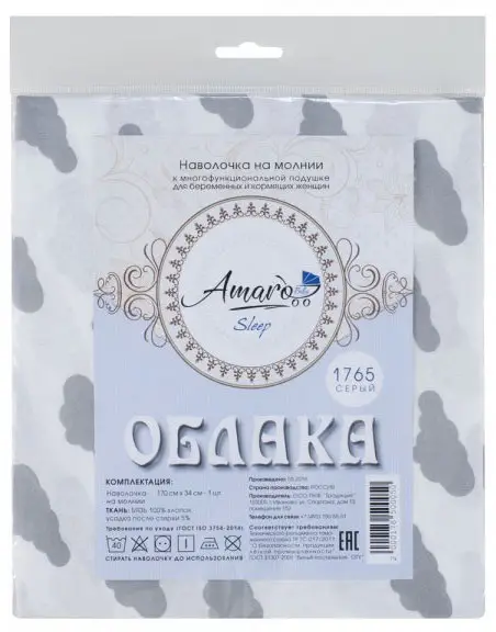 Наволочка к подушке для беременных AmaroBaby Облака серый 170х25 см