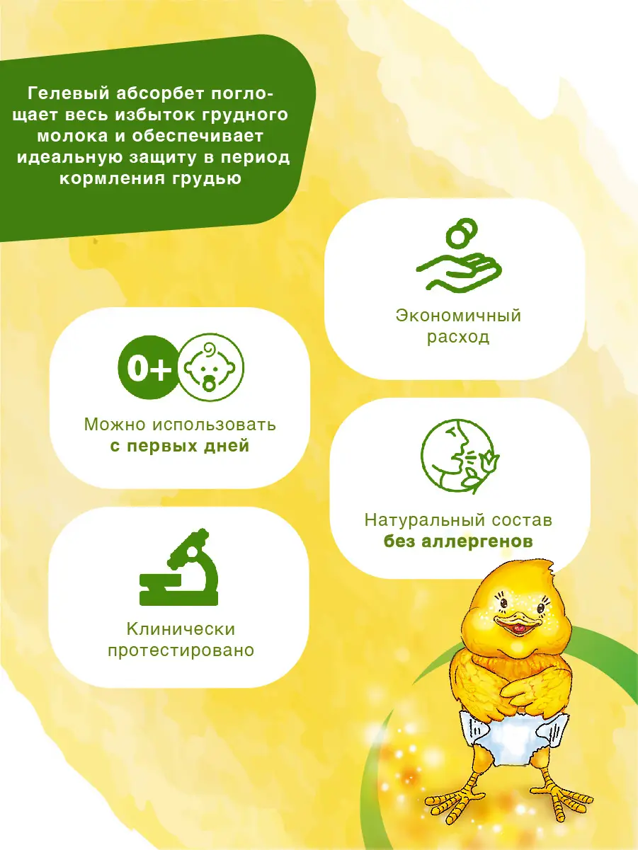 Гелевый абсорбент моментально поглощает весь избыток грудного молока и обеспечивает идеальную защиту в период кормления грудью. Анатомический дизайн идеально адаптирует прокладку под индивидуальную форму Вашей груди. Прокладки необходимо регулярно менять.
