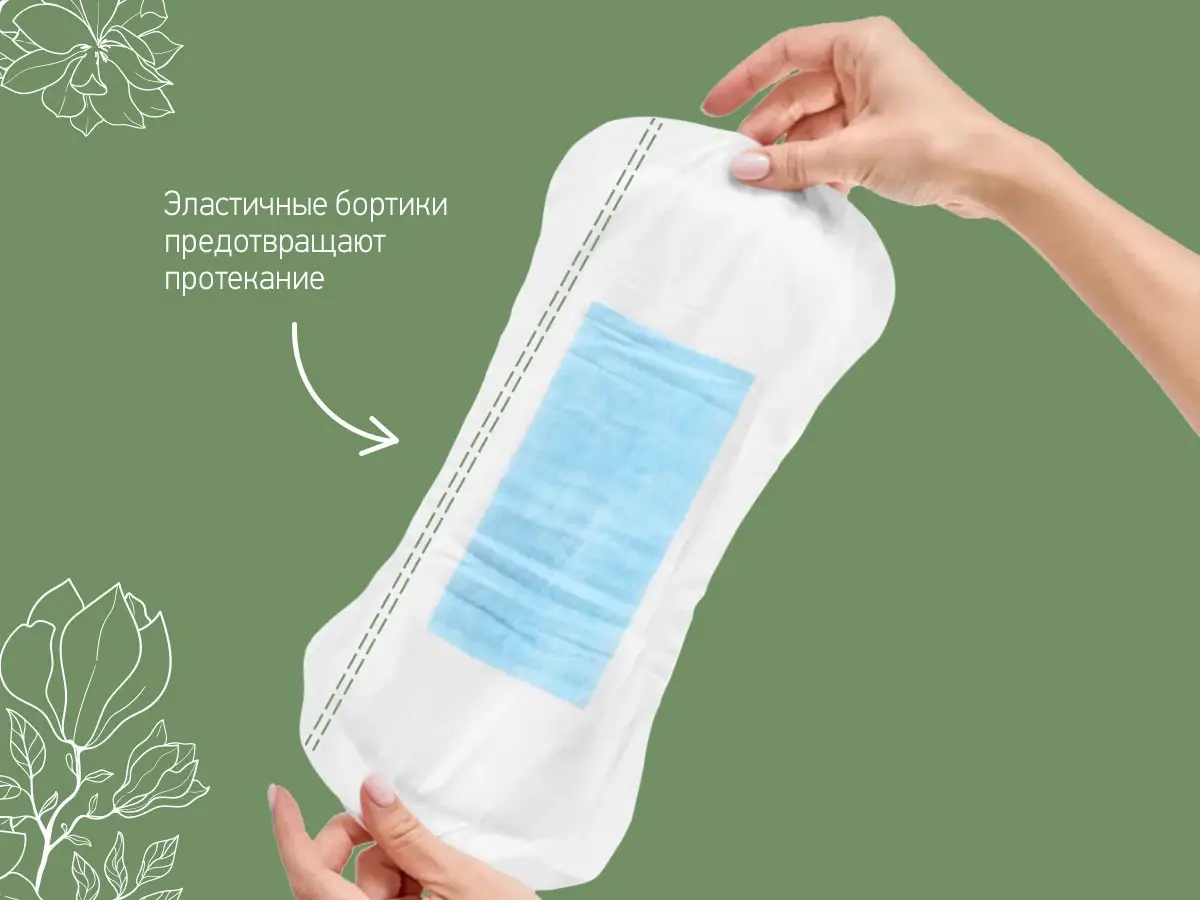 Суперабсорбент моментально превращает жидкость в гель и нейтрализует запах, а эластичные бортики по краям прокладки предотвращают протекани...