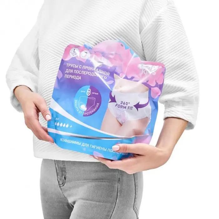 - трусы со встроенной прокладкой требуют меньше действий при надевании, чем комбинация из одноразовых трусов и послеродовой прокладки в отдельности;